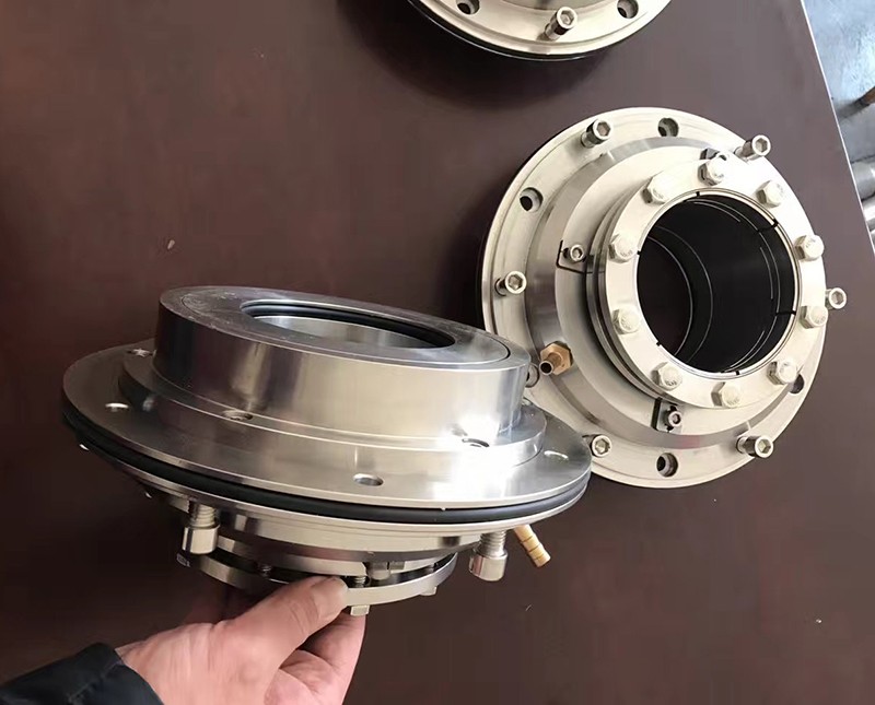 機(jī)械密封:?jiǎn)味嗣鏅C(jī)械密封和雙端面機(jī)械密封兩種型式,密封腔內(nèi)通入一些壓力的水,沖刷磨擦兩端面,同時(shí)起冷卻作用。